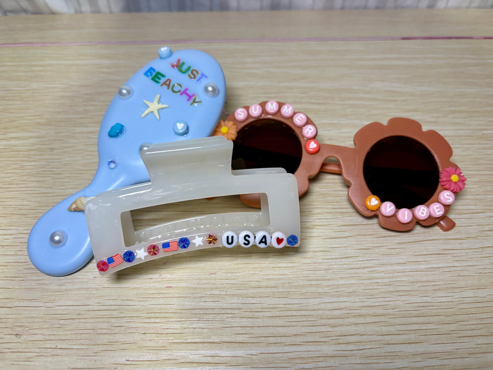 DIY Accessory Decorating Kit – Beads & Bling for Sunnies or Hair Clip + Mini Brush